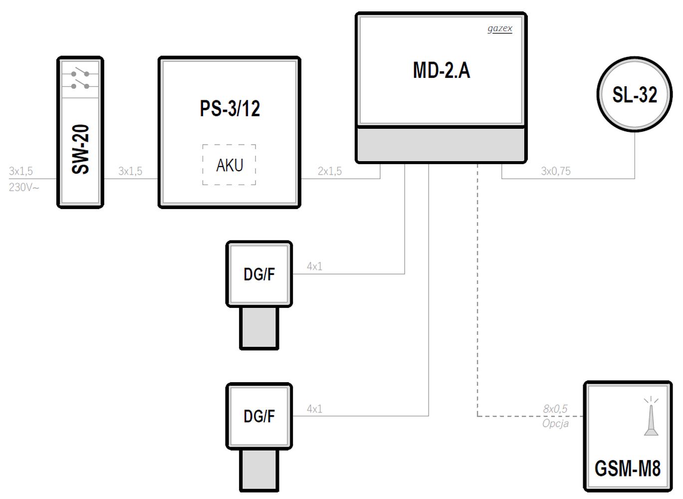 Standard configurations of gas detection systems
