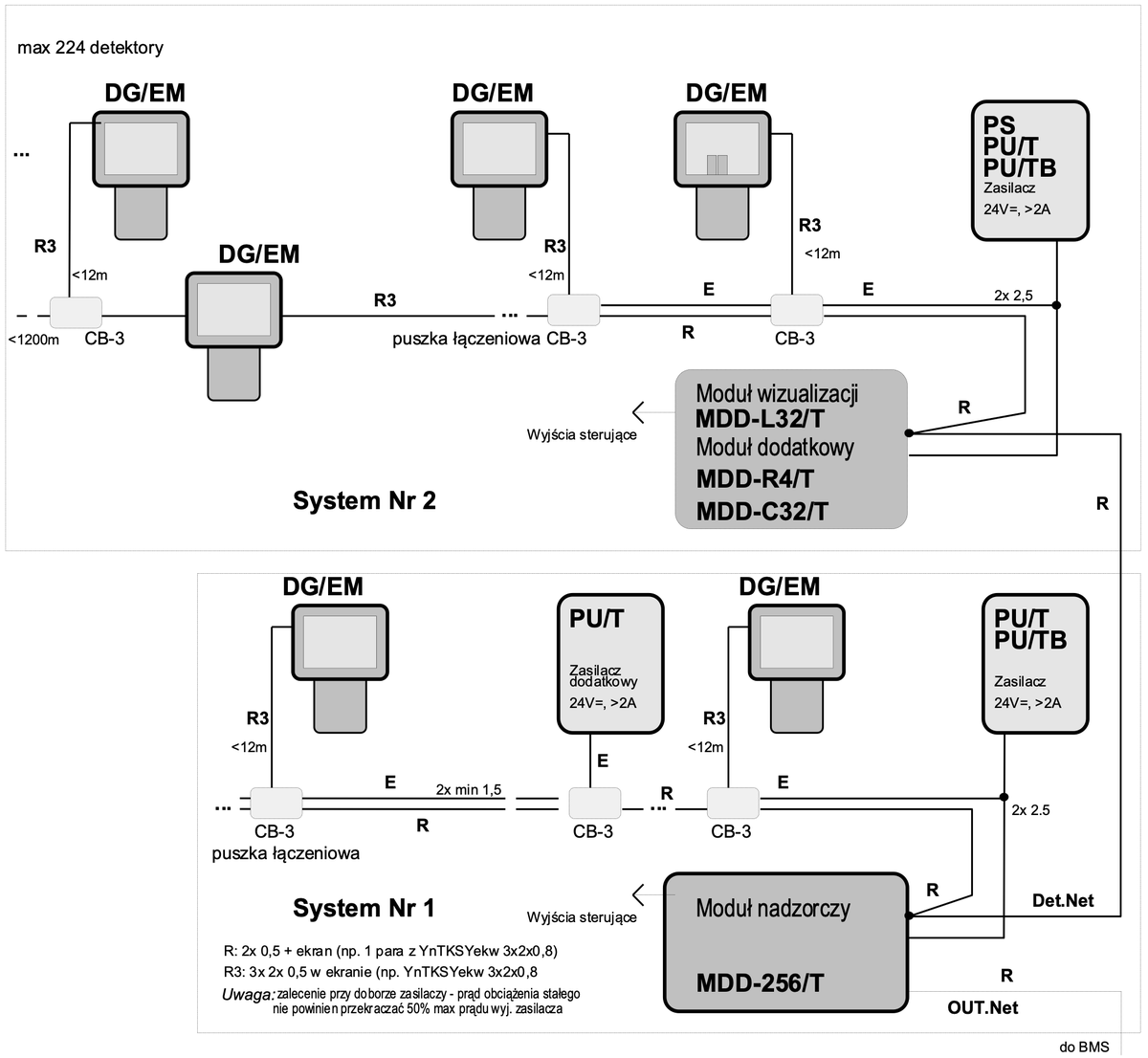 Pomiarowo-progowe, systemowe detektory gazów DG/EM