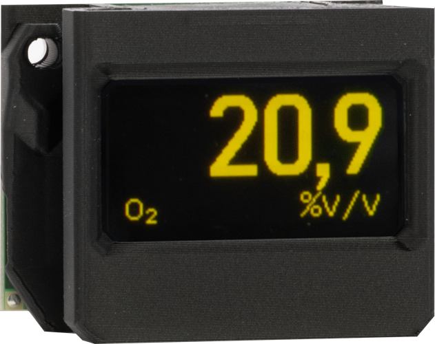 Moduły wyposażone w wyświetlacz alfanumeryczny prezentujący wartość stężenia, jednostkę, medium kalibracyjne lub stan detektora.